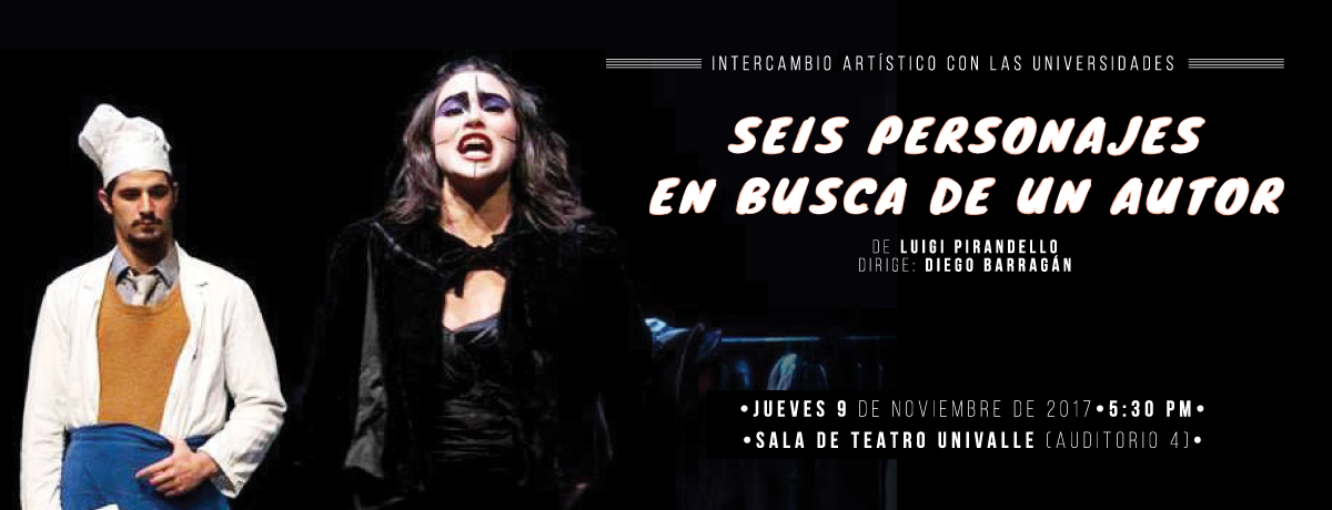 A cargo de los estudiantes del convenio entre la Universidad Central y el Teatro Libre de Bogotá, el Departamento de Artes Escénicas con el apoyo de la Vicerrectoría de Bienestar Universitario y la Facultad de Artes Integradas de la Universidad, presentan Seis personajes en busca de un autor de Luigi Pirandello. La función se llevará a cabo el día jueves 9 de noviembre en la Sala de Teatro Univalle (Auditorio 4).