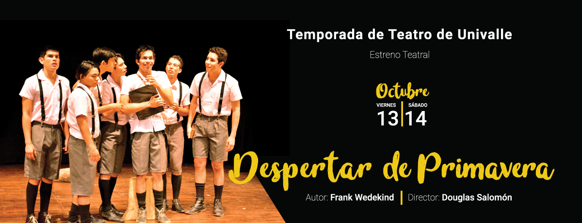 Obra del dramaturgo, actor y periodista alemán Frank Wedekind (1864-1918), dirigida por el maestro Douglas Salomón y representada por actores de la Licenciatura en Arte Dramático este viernes 13 y sábado 14 de octubre en la Sala de Teatro Univalle.