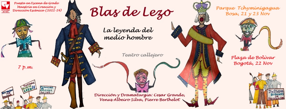En el marco de la temporada de estrenos de los resultados de la Maestría de Creación y Dirección Escénica de la Universidad del Valle (Segunda Cohorte Bogotá, 2022-2024), el Departamento de Artes Escénicas invita al público bogotano al estreno del espectáculo callejero Blas de Lezo, la leyenda del medio hombre, dramaturgia y dirección de Cesar Garnde Ladino. Las funciones tendrán lugar el 21 y 23 de noviembre en el Parque de Artes en la localidad de Bosa, y el 22 de noviembre en la Plaza de Bolívar de Bogotá, los tres días a las 7 p.m.