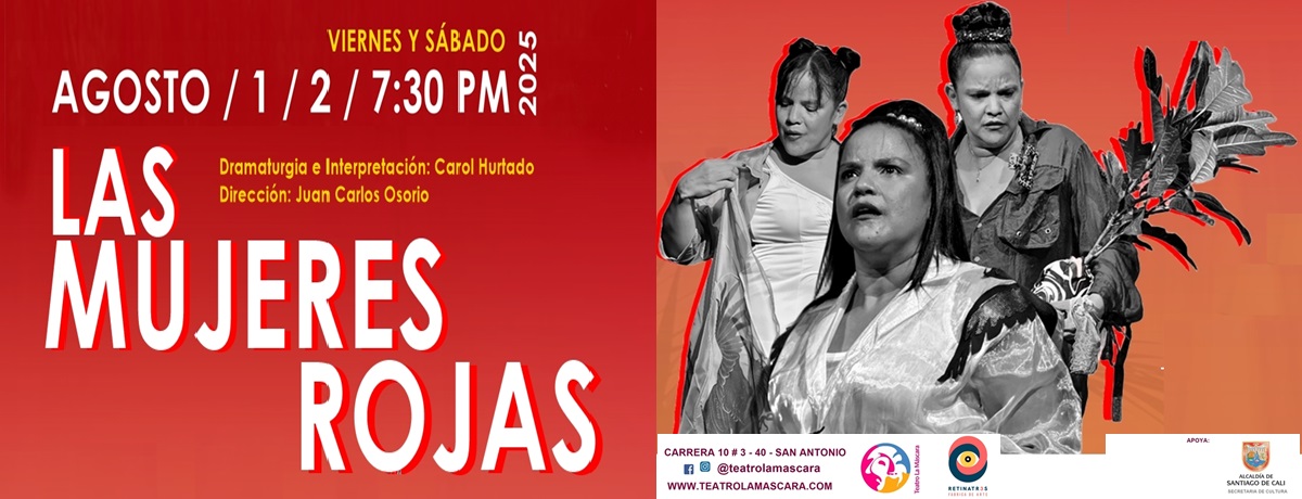 El Departamento de Artes Escénicas invita al público caleño a la programación de la obra Las mujeres rojas, dramaturgia e interpretación de Carol Hurtado y dirección de Juan Carlos Osorio, dos egresados destacados de programas del Departamento, Hurtado de la Licenciatura en Arte Dramático, y Osorio de la Maestría en Dirección. Las funciones tendrán lugar este viernes y sábado 1 y 2 de agosto de 2025 en el el Teatro la Máscara a las 7.30 p.m.