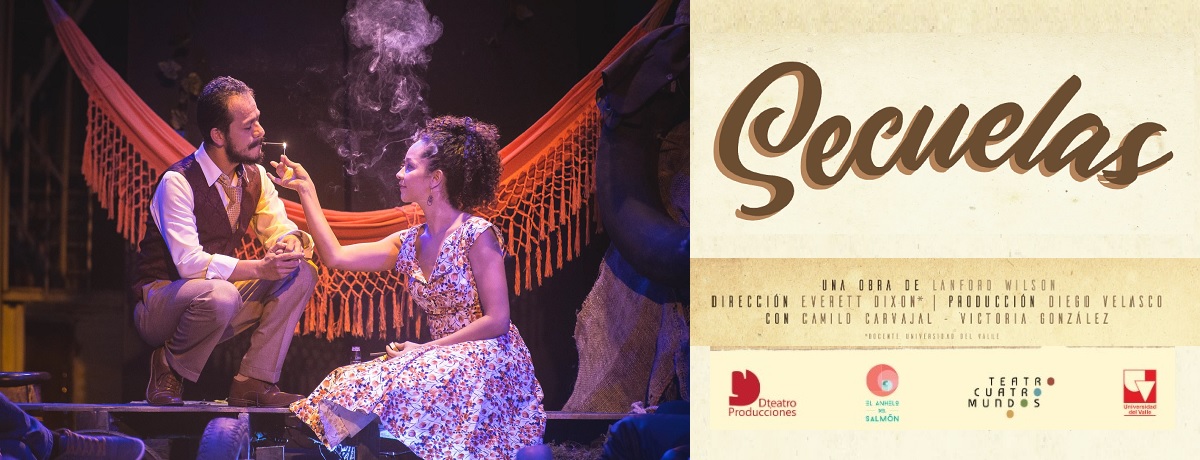 El Grupo de Investigación Teatro Cuatro Mundos anuncia el estreno de la obra Secuelas, una comedia romántica, versión de Talley’s Folly del reconocido dramaturgo estadounidense Lanford Wilson, bajo la dirección de Everett Dixon. Este proyecto, ganador de Beca de Creación Artística y Humanística de la Universidad del Valle de 2018 de la Vicerrectoría de Investigaciones de la Universidad del Valle, se hizo posible gracias a la colaboración con el teatro bogotano Anhelo del Salmón en co-producción con Dteatroproducciones. Se presentará en la Sala Mayolo de Casa E, del 6 de febrero al 9 de marzo, de miércoles a sábado a las 8 pm.