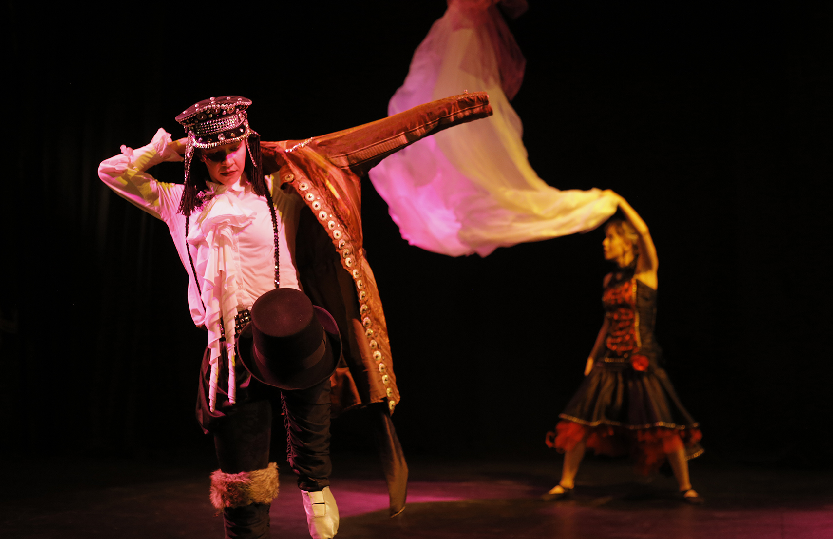 Victoria González y Rossemarie Wallis en El vuelo de la Alondra, adaptación de teatro físico de