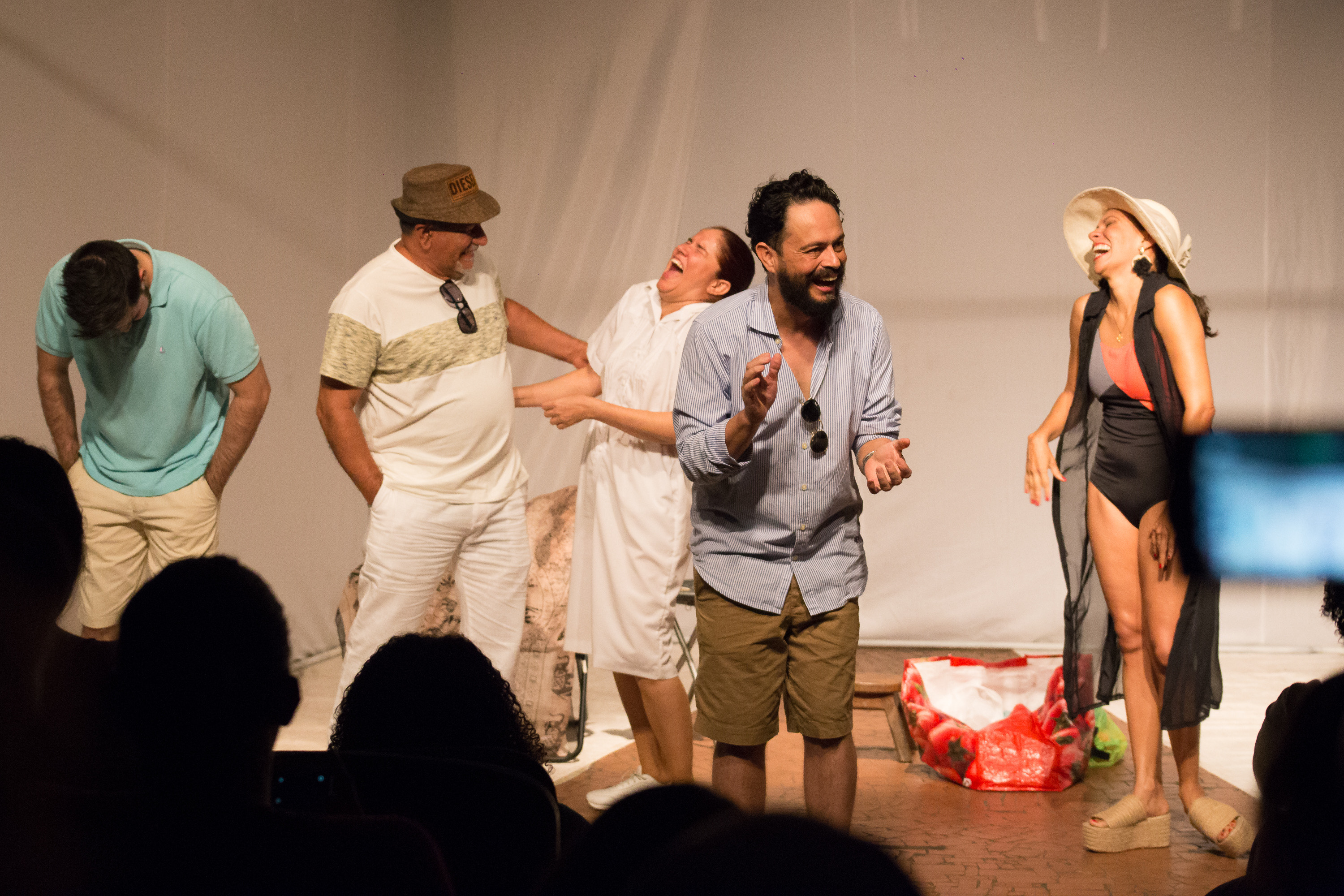 Felipe Pérez y su compañía después de una función de ¿Vos no sabés quién soy yo? (Foto: )