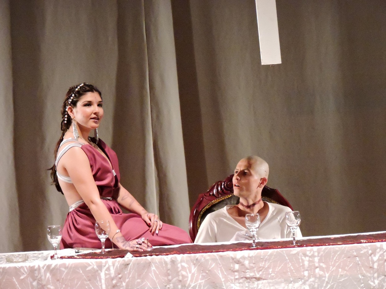 Gabriela Restrepo y Alex Ruíz en La penútima cena, Univalle, 2016 (Foto: Isabel Heraso)