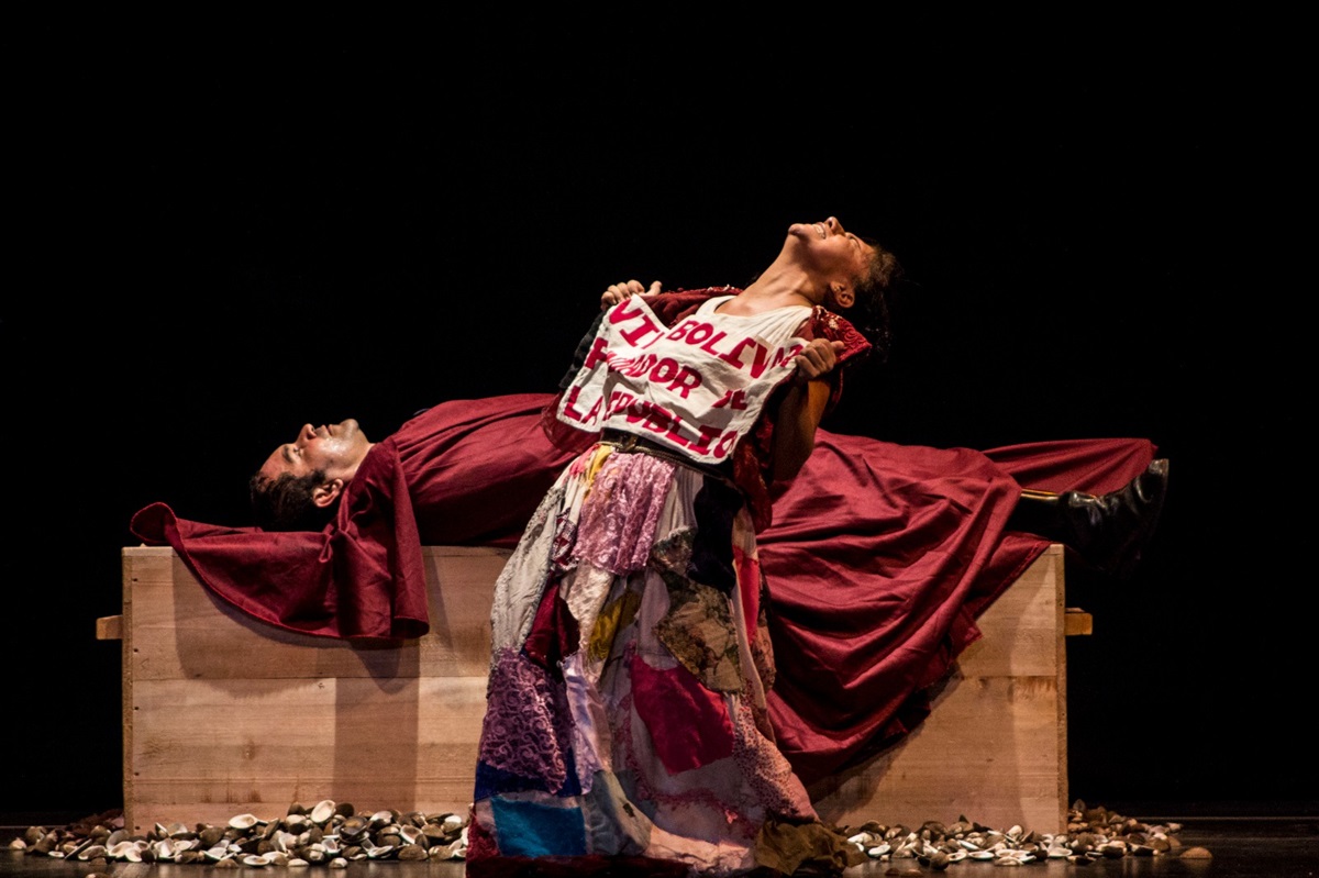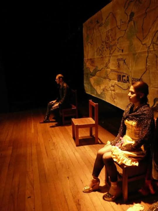 Oswaldo Hernández y Mavim Sánchez Melo en Tríptico del Desarraigo, dirección de Oswaldo Hernández y Doris Sarria.