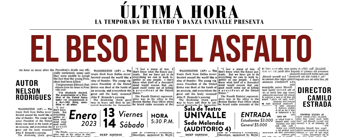 2025 - 2024 - 2023 - 2022 - 2021 2025 Este niño. Dramaturgia de Joël Pommerat Litoral. Dramaturgia de Wajdi Mouawad Zoot Suit. Dramaturgia de Luis Valdez La última carta. Dramaturgia de José Manuel Freidel Artefactos. Dramaturgia de Mike Bartlett Lo que fue. Dramaturgia y dirección de Felipe Pérez Agudelo Ivánov de Ánton Chéjov Creatura. Creación colectiva bajo la dirección de Andrea Bonilla y Eder Montaño A la diestra de Dios Padre de Enrique Buenaventura Edmond de David Mamet La zapatera prodigiosa de Federico García Lorca El jardín de tiza de Enid Bagnold Rubia Paloma. Dramaturgia y dirección de Douglas Salomón Receta para pierna de cerda al horna. Dramaturgia y dirección de Juan Camilo Mutis 2024 Harlem, la última noche. Dramaturgia y dirección de Eder Montaño N● M◖ G◡ST▲ ◖L P▲RQ◡◖S,. Dramaturgia y dirección de Valentina Bernal Capitanes de la arena de Jorge Amado Exsilium de Manuel López Buenas noches, mamá de Marsha Norman Mohammed (o el Coyote) de Moisés Ballesteros Medea de Eurípides Las amargas lágrimas de Petra von Kant de Rainer Werner Fassbinder Primigenio. Coreografía de Pablo Molero Navajas Todxs somos culpables de Federico Roca Parece blanca de Abelardo Estorino 2023 La puta respetuosa de Jean Paul Sartre Alphonse, el niño perdido de Wajdi Mouawad La Tragicomedia de CALIsto y MeliBEA. Variaciones sobre La Celestina de Fernando de Rojas. Am Yu' Kiwe de Brian Friel El Beso en el asfalto de Nelson Rodrigues 2022 Querida Elena Serguéievna de Liudmila Razumóvskaia Políticamente incorrecto de Ray Cooney Historias Cruzadas Pim, Pam, Pum de Eugène Ionesco Anónimos cotidianos de Doris Villarreal Hasta que decidimos gritar de Juan David Núñez El hombre que amó a las nereidas de Marguerite Yourcenar El hombre de la maleta de Eder Montaño La mujer que amaba demasiado de Beatriz Bergamín La ópera que no vale un peso de Bertolt Brecht 2021 El Potrillo de Miguel Ángel Angulo