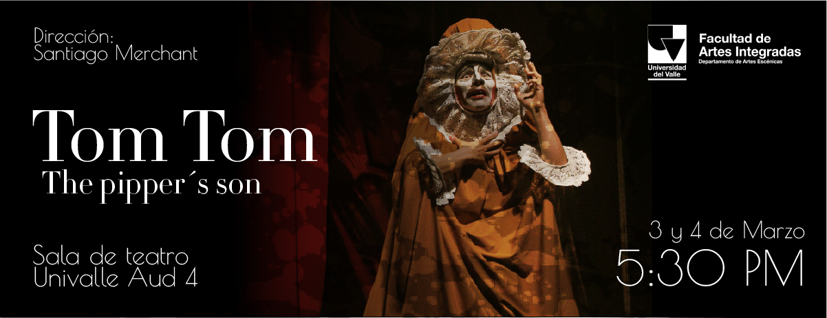 El Departamento de Artes Escénicas de la Universidad del Valle abrió su temporada especial Rumbo al FIAV (Festival Internacional de Artes Vivas) con la presentación de la obra Tom Tom, The Piper’s Son, bajo la dirección de Santiago Merchant. Las funciones se realizaron los días 3 y 4 de marzo, a las 5:30 p. m., en la Sala de Teatro Univalle (Auditorio 4). Este montaje marcó el inicio de una serie de propuestas escénicas que hacen parte de esta programación especial previa al festival.