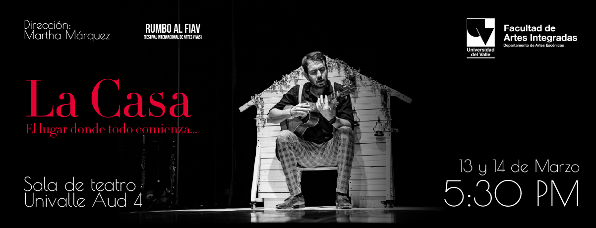 El Departamento de Artes Escénicas de la Universidad del Valle continúa su temporada especial Rumbo al FIAV (Festival Internacional de Artes Vivas) con su función: La Casa: El lugar donde todo comienza. Las funciones se realizarán los días 13 y 14 de marzo, a las 5:30 p. m, en la Sala de Teatro Univalle (Auditorio 4). Este montaje hace parte de la serie de propuestas escénicas que integran esta programación especial previa al festival, consolidando un espacio de exhibición para la creación contemporánea y la exploración escénica dentro de la Facultad de Artes Integradas.
