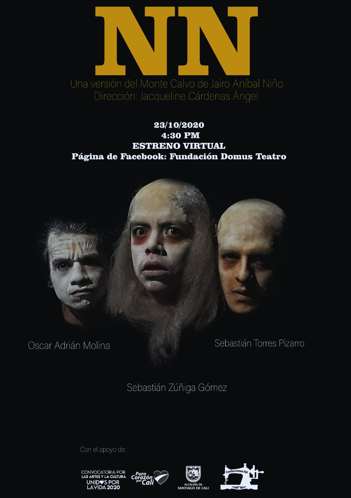 Afiche para NN, versión de Monte Calvo de Jairo Aníbal Niño. Dirección: Jacqueline Cárdenas Ángel.