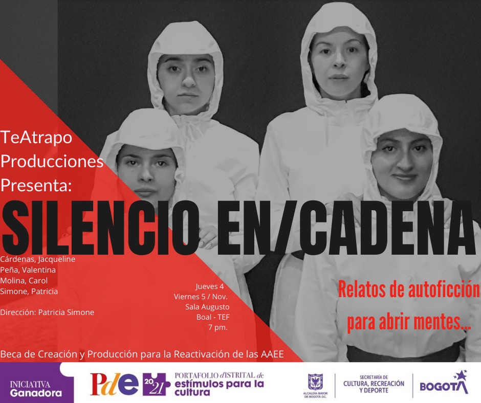 Afiche para Silencio en cadena, dramaturgia y dirección de Patricia Simone.