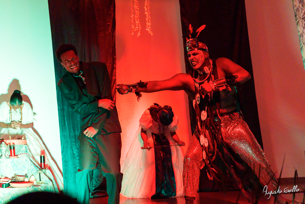 En este tránsito emerge Ifigenia, figura trágica que resignifica el sacrificio como memoria histórica de los cuerpos oprimidos. Su presencia interpela a Emanuel y revela que su conflicto no es solo individual, sino parte de una estructura de violencia y blanqueamiento. En el clímax, Emanuel se despoja de los símbolos de la "civilización" impuesta y, en un acto de catarsis, afirma su identidad negra. Así, la obra se configura como un ritual de liberación, donde el sacrificio, atravesado por Ifigenia, se transforma en resistencia y reexistencia.
