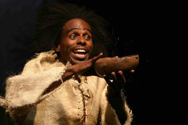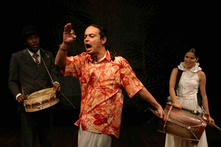 La obra se inicia como un concierto de música del pacífico, interpretado por los mismos actores; marimba, tambores, cununo y clarinete nos introducen el mundo rítmico de la décima y el verso. Cinco actores se distribuyen los papeles, y cual si fuera una obra de teatro popular van introduciéndonos en los laberintos de la antigüedad.