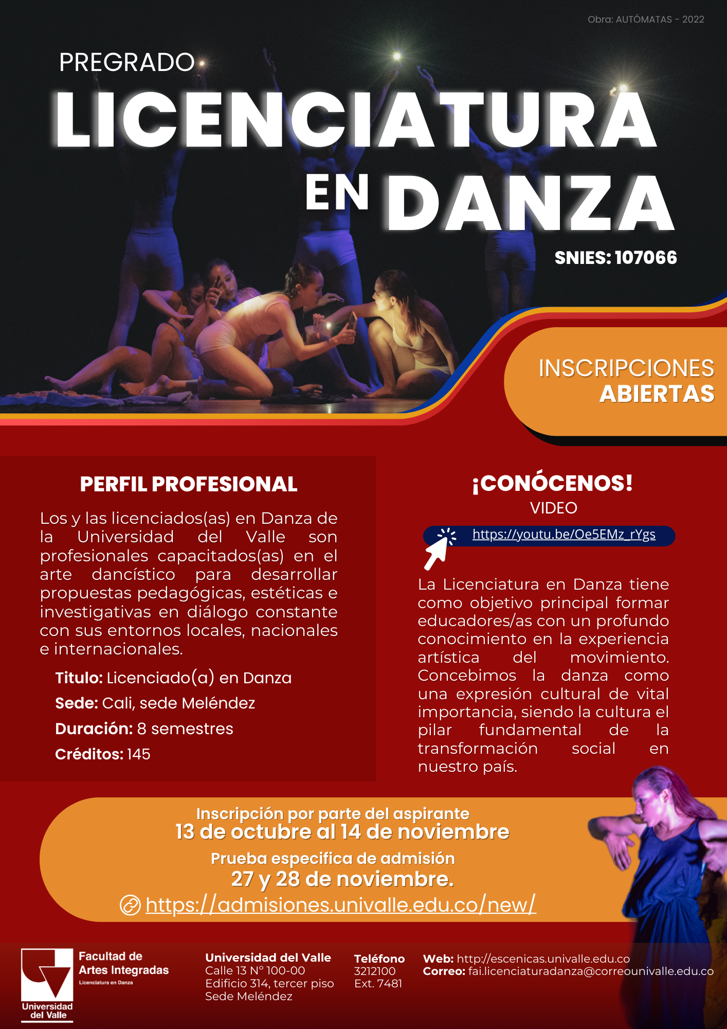 La Licenciatura en Danza abre inscripciones para el primer semestre de 2024. Bienvenidos!!!