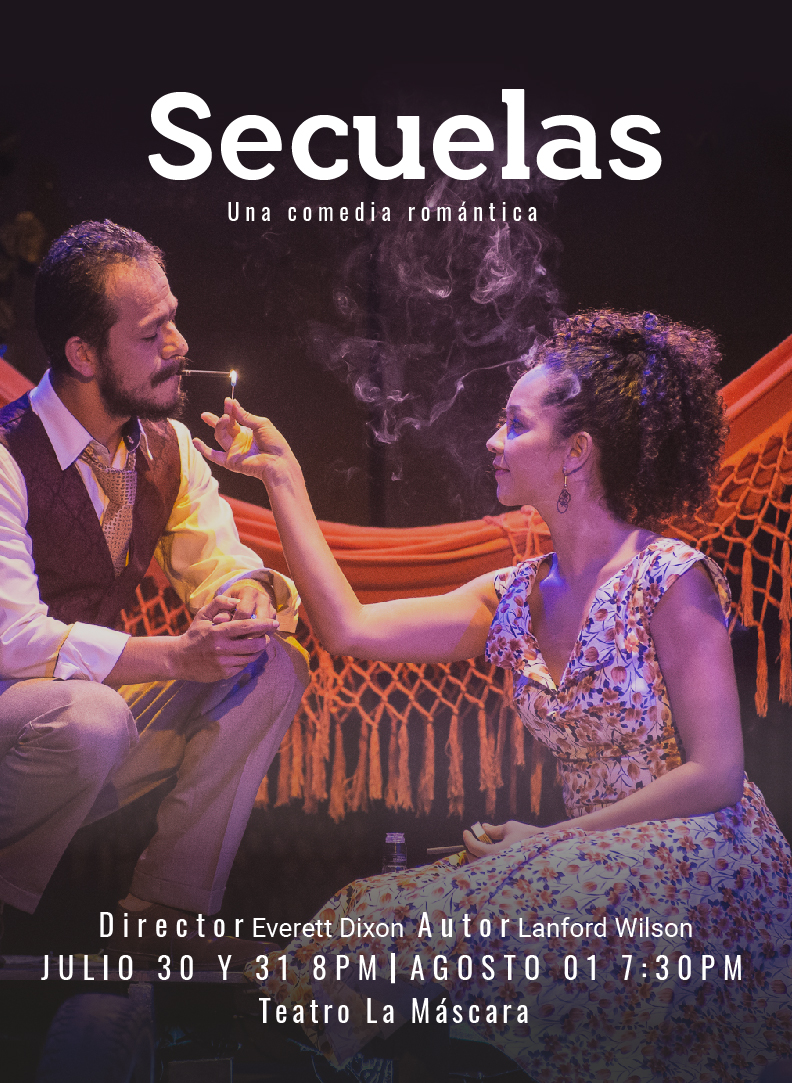 Con la reapertura de los teatros después de la pandemia, el Teatro Cuatro Mundos está feliz de anunciar funciones presenciales de Secuelas, una versión libre de Talley’s Folly en el Teatro la Máscara. La obra es una comedia romántica del reconocido dramaturgo Lanford Wilson, ganador del Premio Pulitzer en 1980, que se estará presentando este 30, 31 de julio y 01 de agosto (viernes, sábado y domingo) en el Teatro La Máscara (Carrera 10 # 3- 40, San Antonio, Cali).