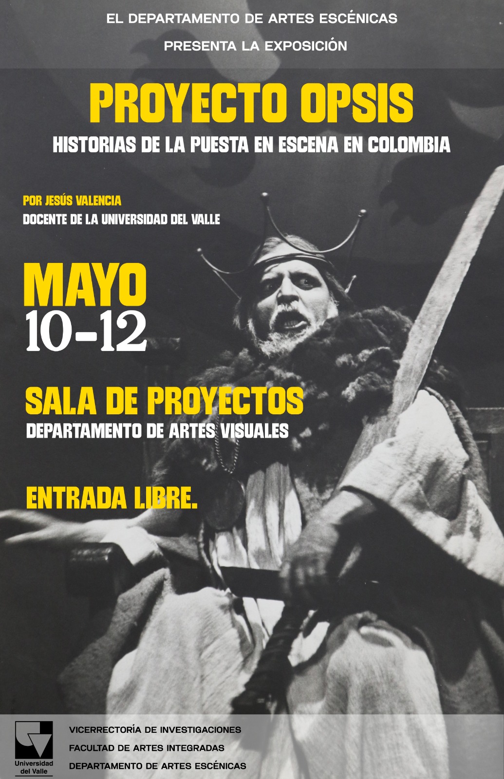 El Departamento de Artes Escénicas, con el apoyo del Departamento de Artes Visuales, la Facultad de Artes Integradas y la Vicerrectoría de Investigaciones de la Universidad del Valle, se complace en presentar la exposición Proyecto Opsis: historias de la puesta en escena en Colombia, resultado del proyecto de investigación liderado por el profesor Jesús David Valencia, ganador de la Convocatoria Interna de Creación e Investigación 2021.
