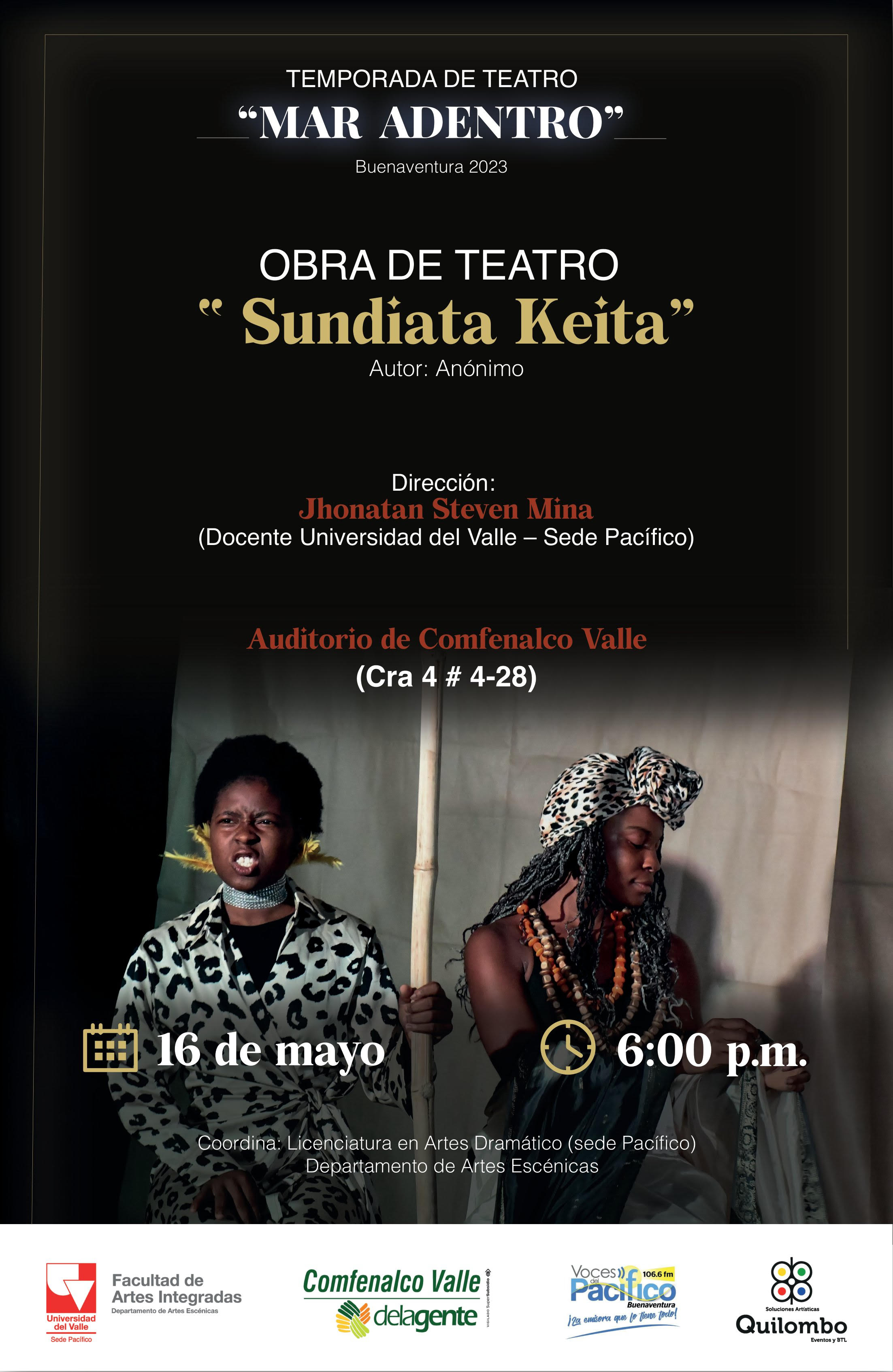 En el marco de la Temporada de Teatro en Buenaventura Mar Adentro, los espectadores tendrán la oportunidad de disfrutar de la obra Sundiata Keita, dirigida por el maestro Jhonatan Mina, en el Auditorio Comfenalco, este martes 16 de mayo a las 6:00 p.m.