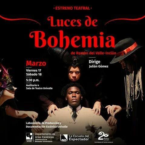 La Temporada de Teatro Univalle presenta el estreno la obra Luces de Bohemia del dramaturgo español Ramón del Valle-Inclán, este viernes 17 y sábado 18 de marzo, en la Sala de Teatro Univalle.(Auditorio IV), a las 530pm.