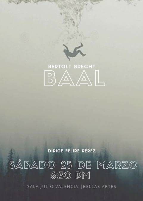 Dentro la Muestra Regional de Escuelas de Teatro, el Departamento de Artes Escénicas continúa con una pequeña temporada en el Instituto Departamental de Bellas Artes, con la obra Baal del dramaturgo alemán Bertolt Brecht, bajo la dirección del maestro Felipe Pérez, este sábado 25 de marzo, en la Sala Julio Valencia a las 6:30 pm.