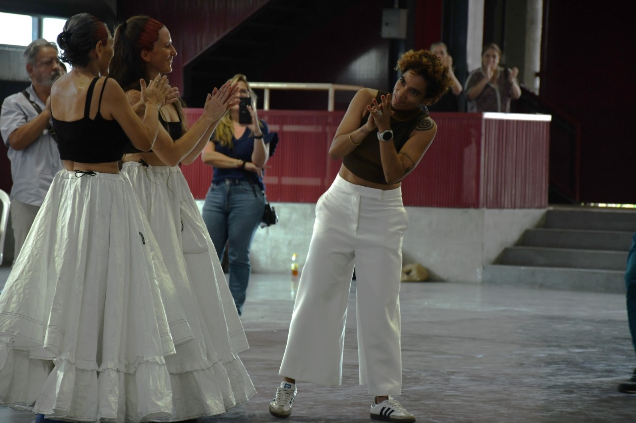 Junto a ellos, las maestras Diana María García y Katherine Ágredo, y la estudiante de tercer semestre Estefany Olaya, formaron parte del grupo de quince bailarinas que dieron vida, movimiento y cuerpo a la pieza construida. Cada una aportó su propia historia, corporalidad y experiencia en la danza para dialogar desde una horizontalidad interpretativa, siendo colegas, equipo y un solo cuerpo.