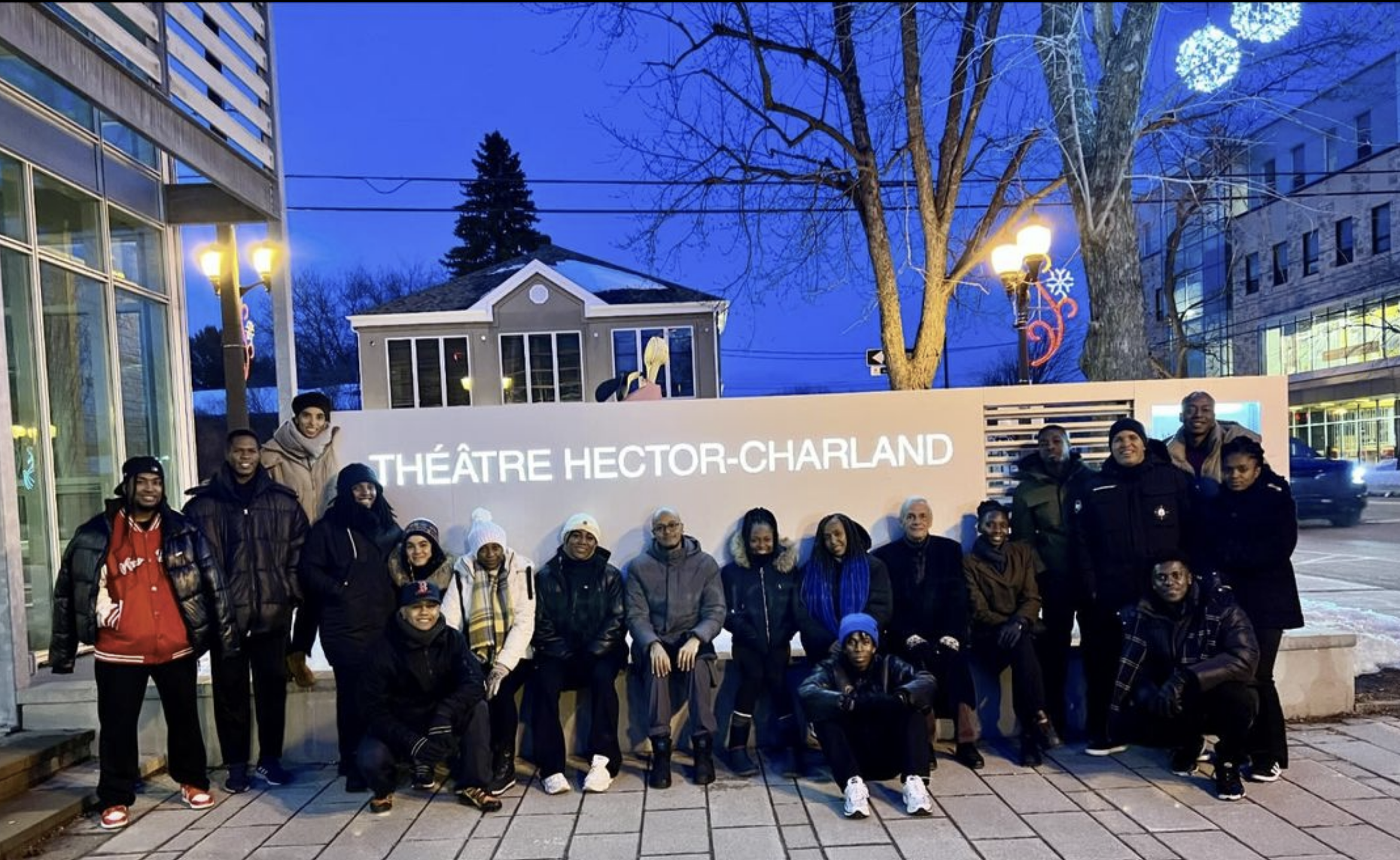 Andrea Bonilla Ospina junto con los y las integrantes de la compañía Sankofa Danza Afro en el Théatre Hector Charland, Canadá.