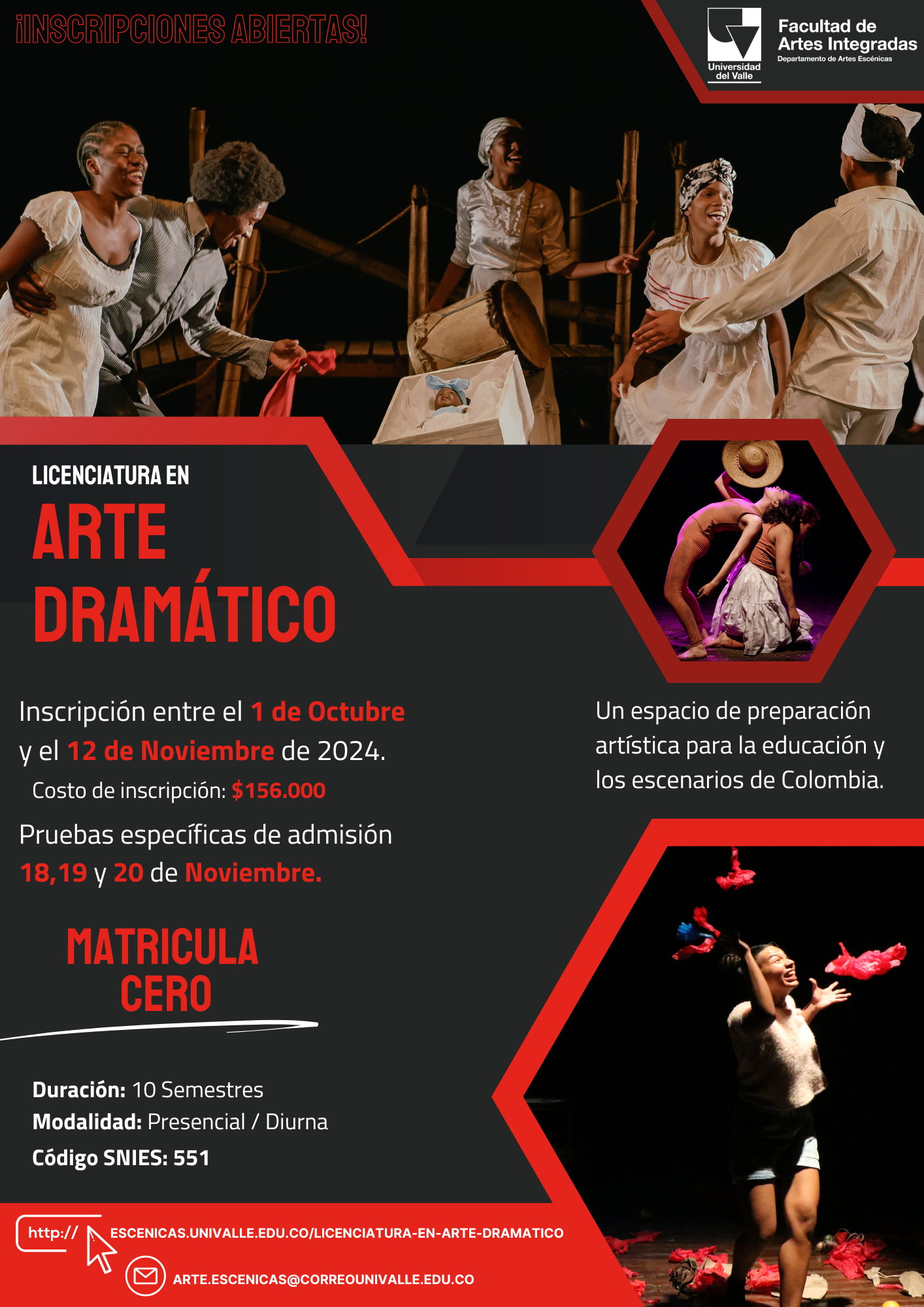 Docente teatral para la educación básica y media, con capacidad de asumir la educación artística a nivel universitario.
