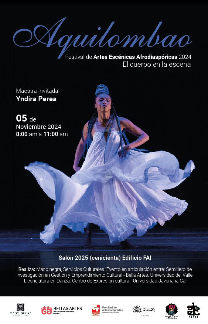 Es una apuesta política y cultural para contribuir a dignificar y visibilizar la creación escénica afrocentrada. Del 30 de octubre al 9 de noviembre del 2024, Cali se convierte en el espacio para la reflexión y el arte en escenarios descentralizados como BlackGround Lab, la carcel de Valle del Lili, la Sala Beethoven, la Casa del Chontaduro entre otros. Aquilombarnos para recordar que las historias negras también son historias, también son arte, también son vida. Para visibilizar la creación escénica de la diáspora africana, para reunirnos, reírnos y danzar juntxs, para seguir soñando con distintas realidades.