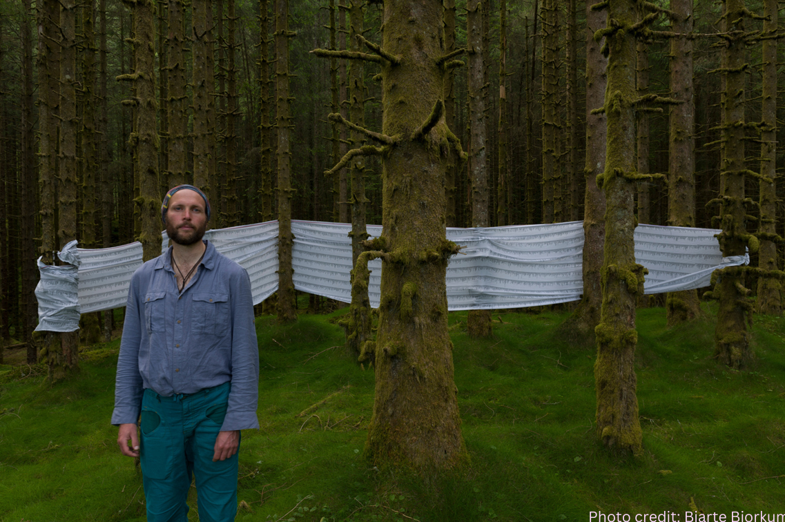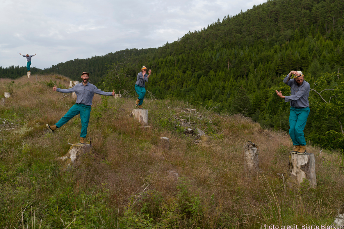 Hacer teatro en tiempos del Antropoceno brinda la oportunidad de explorar no sólo el tipo de teatro que hacemos, sino también cómo lo hacemos y cómo lo llevamos de gira. Tras desarrollar ideas en colaboración con el Passage Festival (Dinamarca), Tom emprendió un emocionante experimento de teatro lento en gira. Buscando vínculos ecológicos entre distintos países (Reino Unido-Noruega-Dinamarca), Tom siguió las viejas y desaparecidas líneas de árboles de los bosques «boreales» del norte a través de Escocia y Noruega (mayo-julio de 2024), actuando finalmente en el Passage Festival de Dinamarca. Cada día realizó micro performances con paisajes y documentó su viaje mediante un ensayo fotográfico: