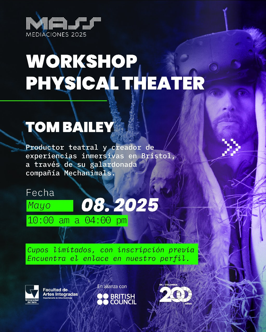 El Departamento de Artes Escénicas invita a los estudiantes de la Universidad a participar en un taller de teatro físico dirigido por el galardonado artista británico Tom Bailey. El maestro utiliza técnicas teatrales y movimiento para descubrir narrativas ocultas y para conectarse un planeta en constante cambio. El taller tendrá lugar el 8 de mayo del 10 am a 4 pm, y los cupos son limitados.