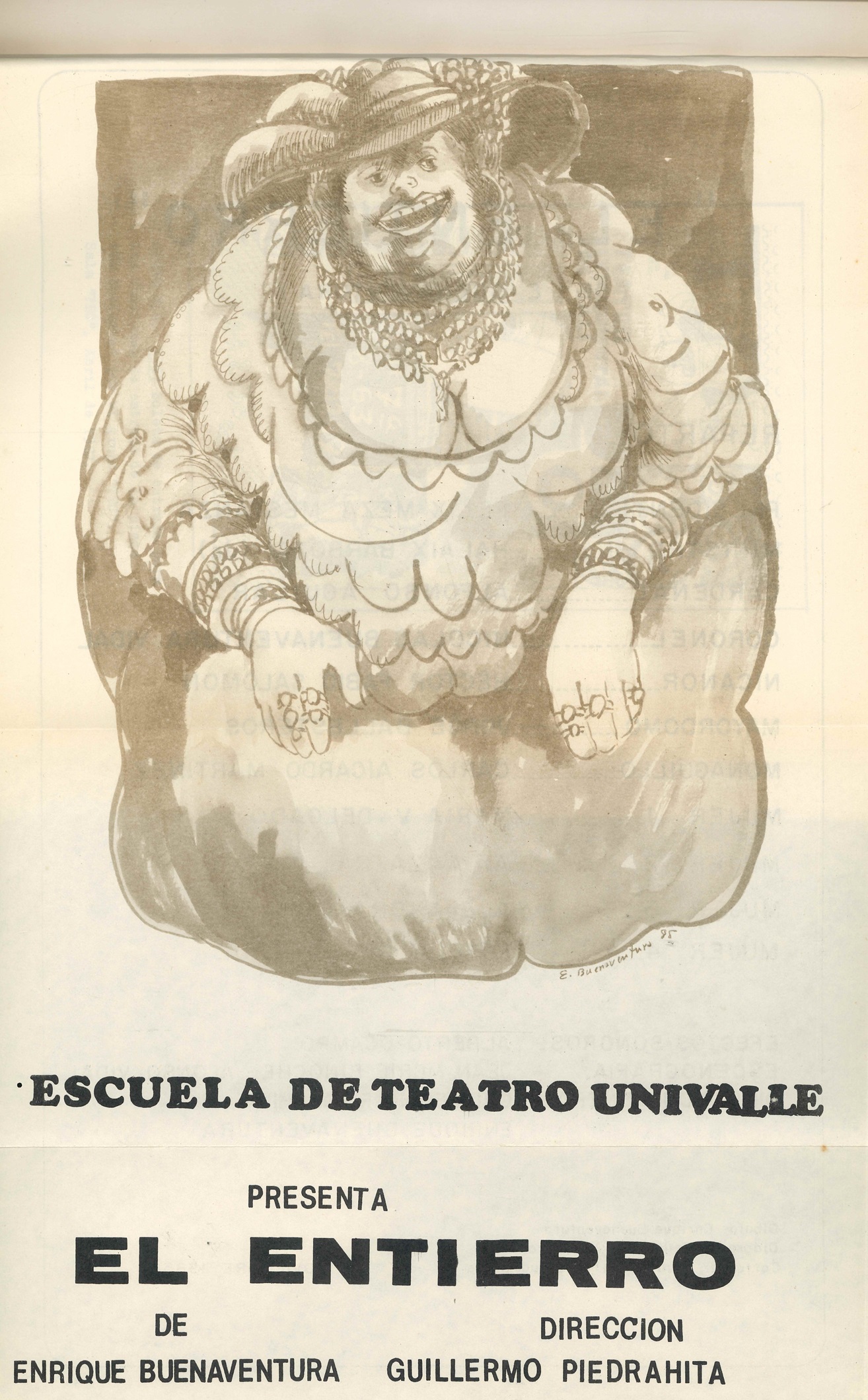 El Plan de Estudios de Arte Dramático de la Universidad del Valle anuncia el estreno de El Entierro, adaptación insigne de Enrique Buenaventura y el Teatro Experimental de Cali del cuento de Gabriel García Márquez "Los funerales de la Mamá Grande". La dirección está a cargo de Guillermo Piedrahita.