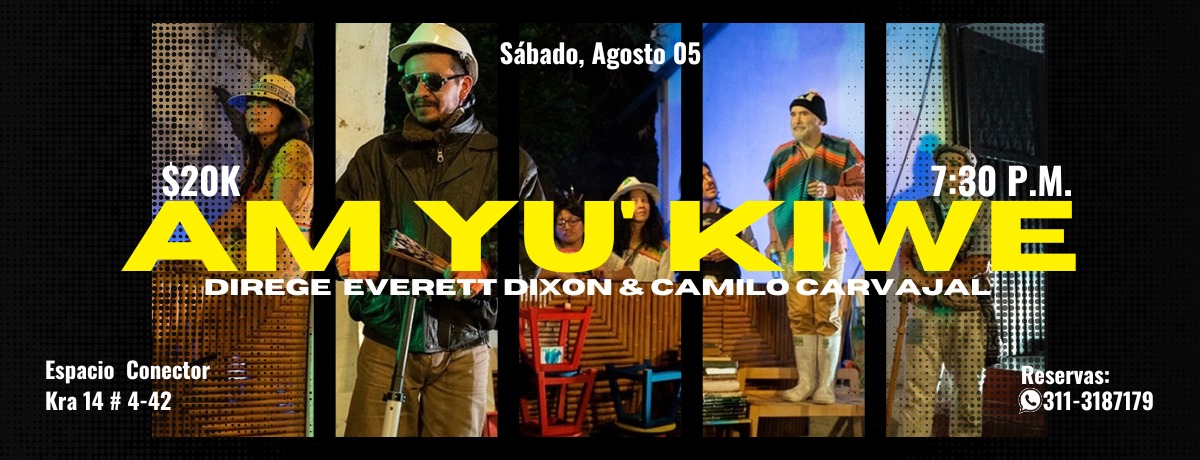 En el marco del Festival Pasionaria, Enredo de Artistas Indisciplinadxs, y como preparación de su participación en el 2o Festival de Teatro Indígena y Afrocolombiano Inti Amaru 2023, el Departamento de Artes Escénicas y el Grupo de Investigación Teatro Cuatro Mundos invita a una función de Am Yu' Kiwe en el Espacio Conector (Cra 14 No 4-42) este sábado 5 de agosto de 2023 a las 7:30 pm.