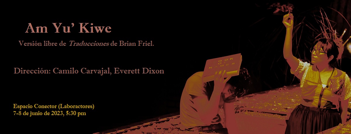El grupo de investigación Teatro Cuatro Mundos anuncio el estreno de Am Yu' Kiwe, versión libre de la obra Traducciones del dramaturgo irlandés Brian Friel, bajo la dirección de Camilo Carvajal y Everett Dixon, y la dirección dramatúrgica de Sol Colmenares. Am Yu' Kiwe es ganadora de la Convocatoria Interna de Proyectos de Creación Artística y Humanística de 2021 de la Vicerrectoría de Investigaciones de la Universidad del Valle. Las funciones tendrán lugar del 9-12 de febrero de 2023 en el Laboratorio Conector, a las 5:30pm.