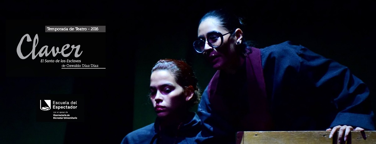 El Departamento de Artes Escénicas anuncia la programación de Claver de Oswaldo Díaz Díaz, la historia del primer santo abanderado de los Afro en Colombia, ene el Teatro la Máscara este viernes 25 y sábado 26 de septiembre de 2015, a las 730 pm.