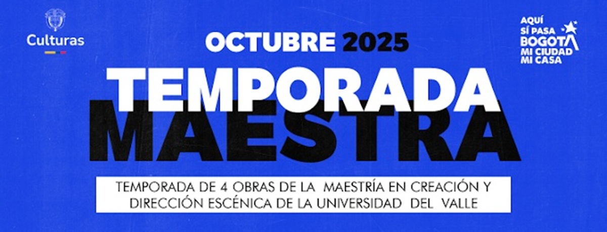 La Maestría en Creación y Dirección Escénica de la Universidad del Valle, sede Bogotá, y el Teatro la Maldita Vanidad se unen en la “Temporada Maestra” para presentar una selección de cuatro destacados trabajos de grado de los egresados; un espectáculo cada semana de jueves a sábado, en la sede de la compañía, del 2 al 26 de octubre, jueves a domingo. Adicionalmente tendremos un conversatorio denominado “La maestría como plataforma de creación y dirección escénica” con los directores de los proyectos y la coordinación de la maestría, el jueves 18 de octubre, a las 5:00 pm.