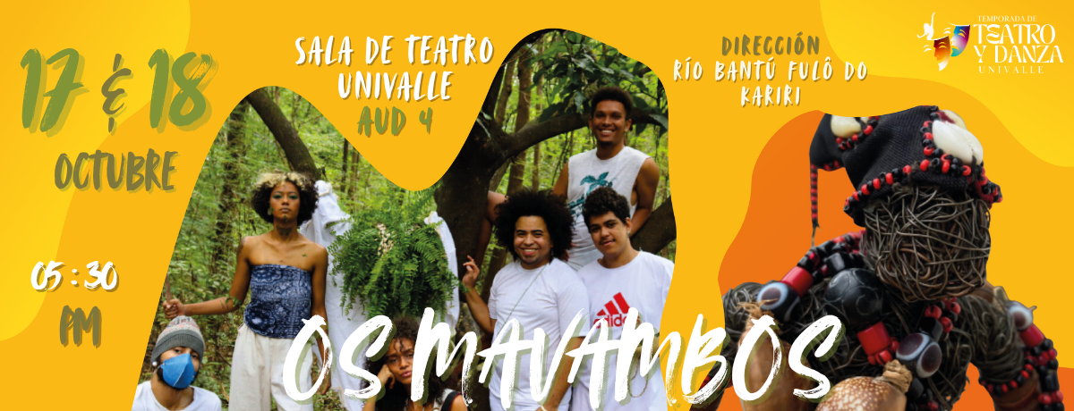 El Departamento de Artes Escénicas sigue su Temporada de Teatro y Danza Univalle 2025-2 con el gusto de invitarlos a una obra con invitados desde Brasil, Os Mavambos es una acción performativa que propone una experiencia inmersiva con cantos de música negra brasileña, especialmente aquella que dialoga con las tradiciones africanas y los ritmos del candomblé y la umbanda, entre otros.
