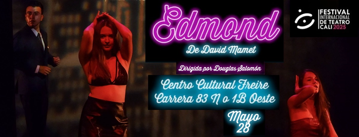 El Departamento de Artes Escénicas anuncia la participación de la obra Edmond, del dramaturgo estadounidense David Mamet, bajo la dirección de Douglas Salomón, en el Festival Internacional de Cali 2025. La función de la obra tendrá lugar el 28 de mayo en el Centro Cultural Freire a las 4 pm. La entrada es libre.
