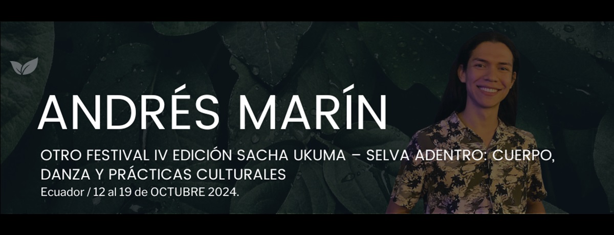 En el marco del Estímulo para apoyo a Residencias Artísticas otorgado por la Secretaría de Cultura de Santiago de Cali, Andrés Marin Muñoz, estudiante de último semestre de la Licenciatura en Danza, fue uno de los ganadores de dicho estímulo con su proyecto "Cuerpo en el Territorio: proceso CorpoDanzado In Situ", por medio de cual desarrollará una residencia artística en OTRO Festival IV Edición SACHA UKUMA – SELVA ADENTRO: Cuerpo, Danza y Prácticas Culturales en la selva amazónica del Ecuador, que se llevará a cabo del 12 al 19 de octubre de 2024.